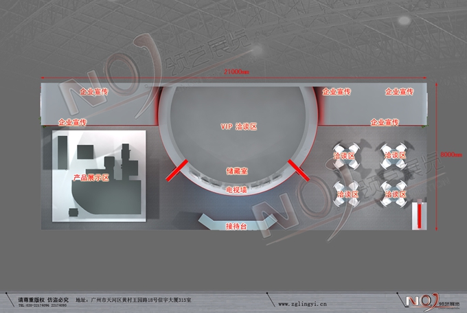 巧妙的運(yùn)用紅色、白色作搭配,著重突出品牌和產(chǎn)品的展示,使整個展位時尚新穎。