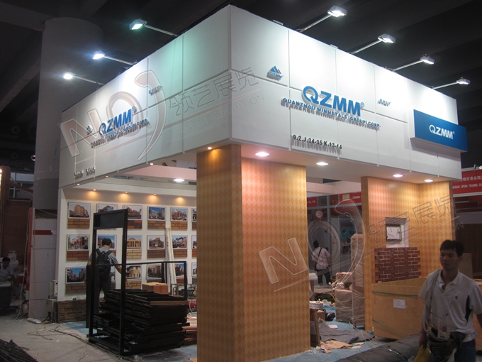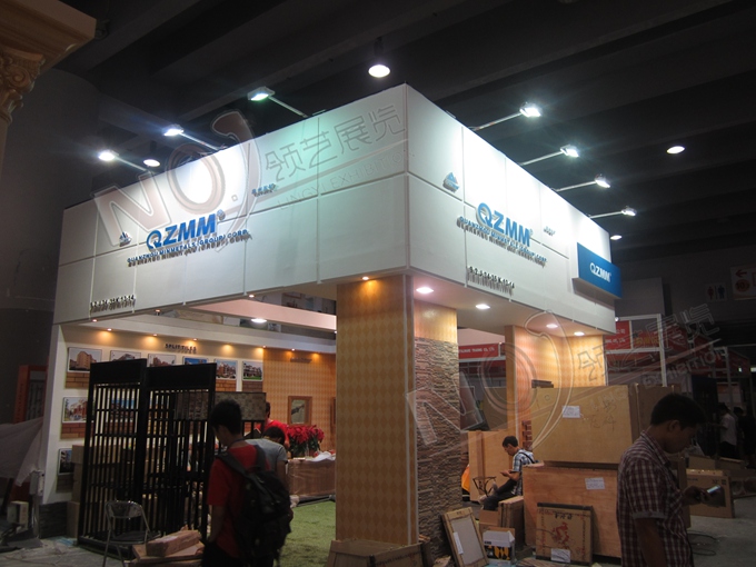 契合泉州五礦集團的品牌形象和產(chǎn)品特性,采用矩形結(jié)構(gòu),再搭配燈具燈光的效果,襯托出展位高端、時尚的氛圍,突出一種現(xiàn)代、大氣的時尚品味。
