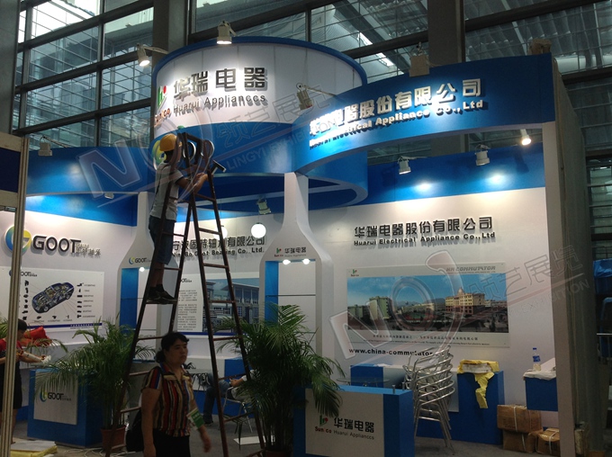 契合華瑞電器的品牌形象和產品特性,采用弧形、框型結構,再搭配燈具燈光的效果,襯托出展位簡潔、明亮的氛圍,突出一種創(chuàng)新、簡約的時尚品味。