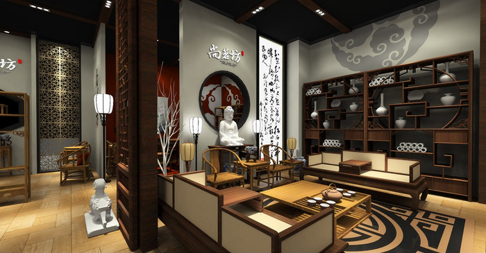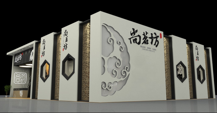 契合尚茗的品牌形象采用古典的造型突出品牌,再搭配燈具燈光的效果,襯托出展位的古典文化和產(chǎn)品交相呼應(yīng)。