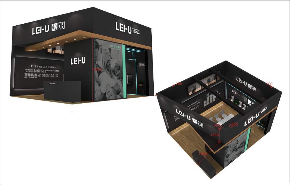 契合雷羽的品牌形象和產(chǎn)品特性,采用矩形結(jié)構(gòu),再搭配燈具燈光的效果,襯托出展位大氣、豪華的氛圍,突出一種簡(jiǎn)約、時(shí)尚的品味。
