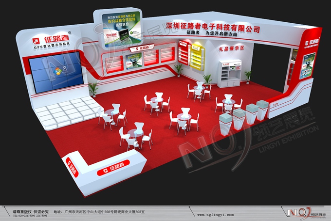 巧妙的運(yùn)用紅色、白色做搭配,著重突出品牌和產(chǎn)品的展示,使整個展位簡潔大方又高端大氣。