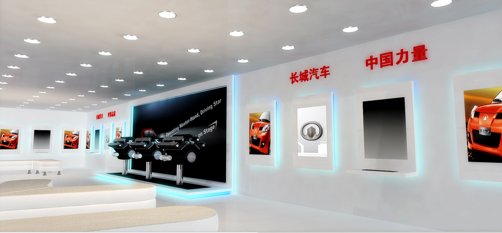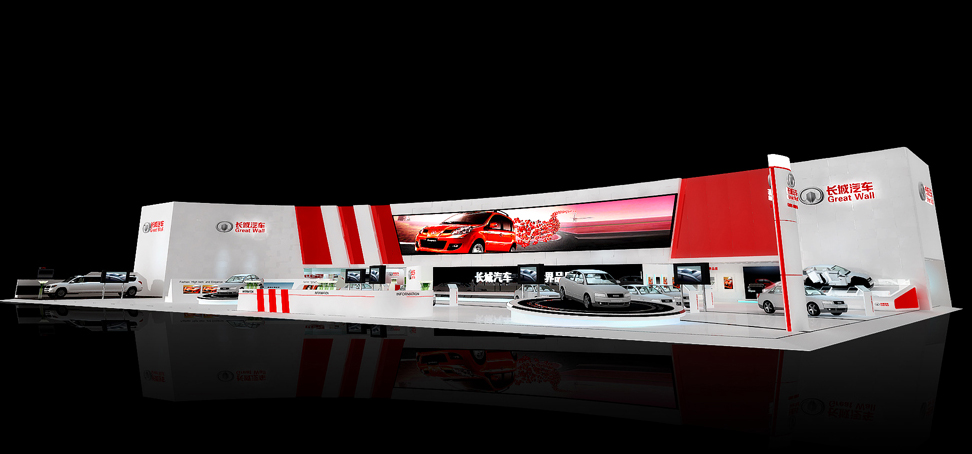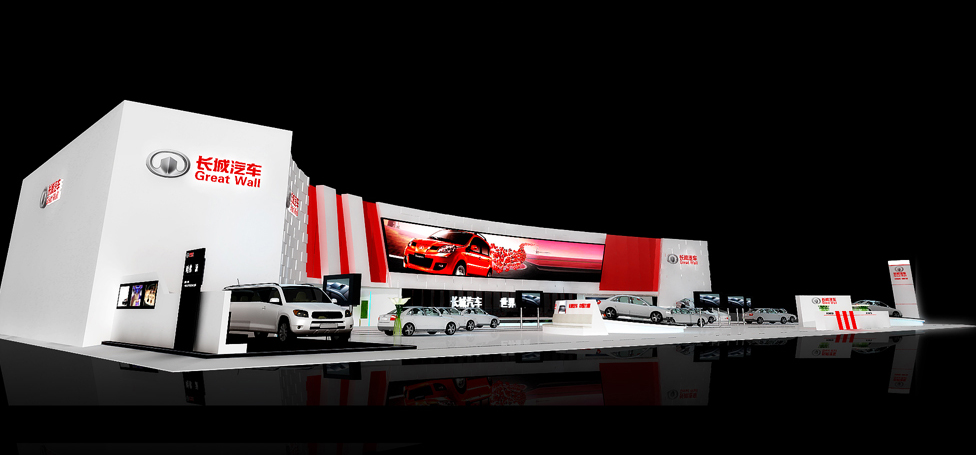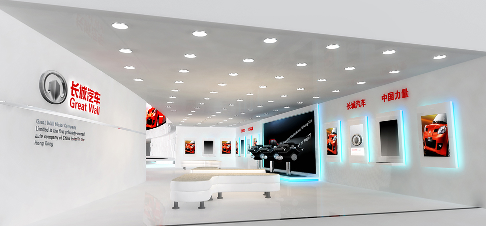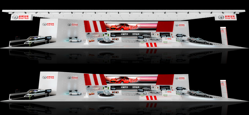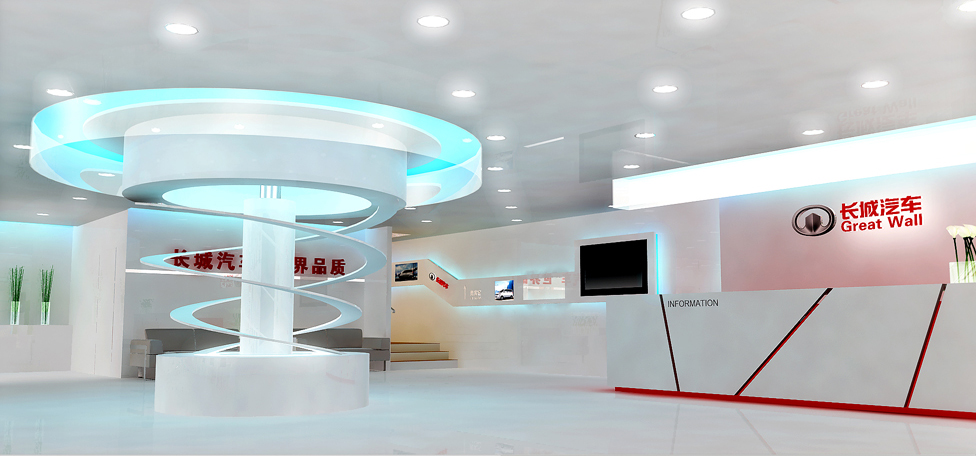 契合長(zhǎng)城汽車的品牌形象和產(chǎn)品特性,采用矩形結(jié)構(gòu),再搭配燈具燈光的效果,襯托出展位高端、時(shí)尚的氛圍,突出一種現(xiàn)代、大氣的時(shí)尚品味。