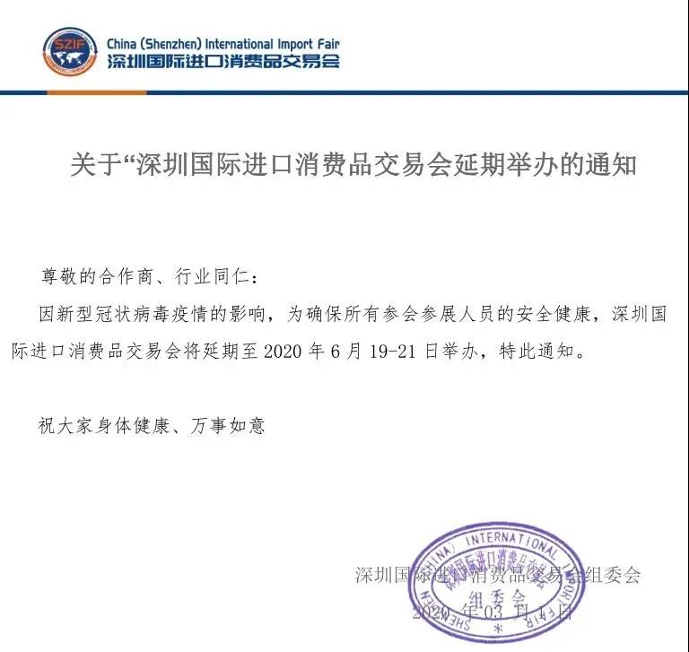 根據(jù)深圳展會設計搭建公司領藝展覽了解到,原定于2020年3月24-27日舉辦的深圳國際進口消費品交易會因受疫情影響,將延期至2020年6月19-21日舉辦!如需深圳展會設計請聯(lián)系領藝展覽,希望我們能在深圳展會搭建上為您添磚加瓦,祝各位朋友收獲多多,滿載而歸!