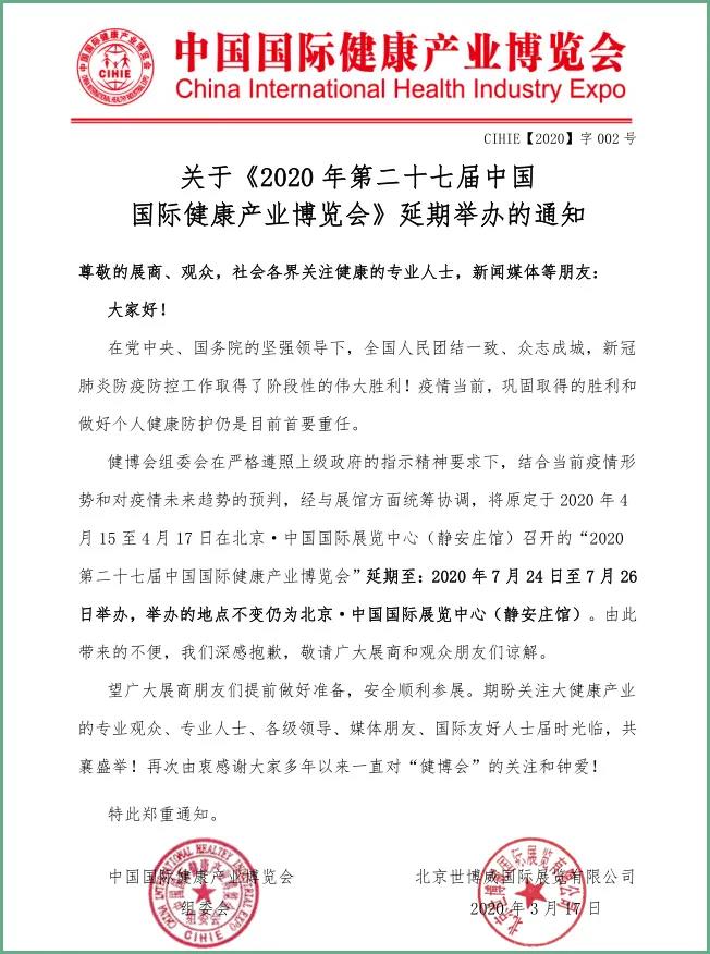 根據(jù)健博會設(shè)計搭建公司領(lǐng)藝展覽了解到,2020CIHIE·健博會延期至7月24—26日舉辦。如需健博會設(shè)計請聯(lián)系領(lǐng)藝展覽,希望我們能在健博會搭建上為您添磚加瓦,祝各位朋友收獲多多,滿載而歸!