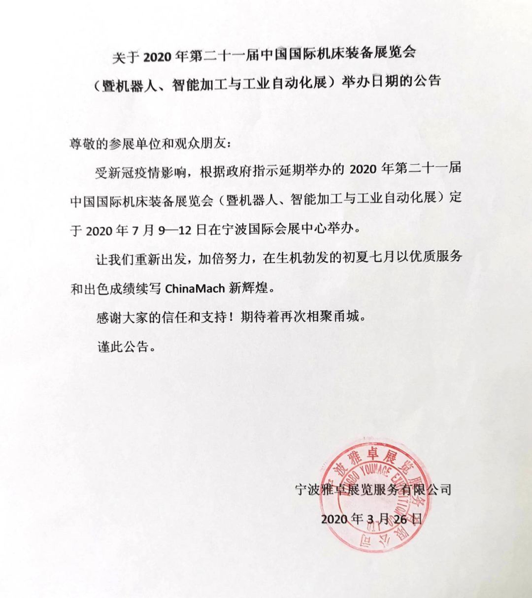 CIMES2020第十五屆中國(guó)國(guó)際機(jī)床工具展覽會(huì)將延期舉辦
