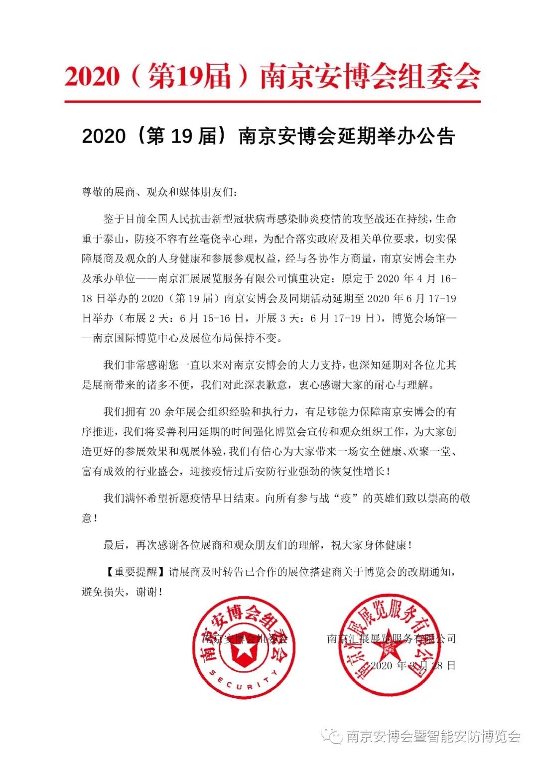 根據(jù)南京安博會設(shè)計(jì)搭建公司領(lǐng)藝展覽了解到,鑒于目前全國人民抗擊新型冠狀病毒感染肺炎疫情的攻堅(jiān)戰(zhàn)還在持續(xù),生命重于泰山,防疫不容有絲毫僥幸心理,為配合落實(shí)政府及相關(guān)單位要求,切實(shí)保障展商及觀眾的人身健康和參展參觀權(quán)益,經(jīng)與各協(xié)作方商量,南京安博會主辦及承辦單位——南京匯展展覽服務(wù)有限公司慎重決定:原定于2020年4月16-18日舉辦的2020(第19屆)南京安博會及同期活動延期至2020年6月17-19日舉辦(布展2天:6月15-16日,開展3天:6月17-19日),博覽會場館——南京國際博覽中心及展位布局保持不變。如需南京安博會設(shè)計(jì)請聯(lián)系領(lǐng)藝展覽,希望我們能在南京安博會搭建上為您添磚加瓦,祝各位朋友收獲多多,滿載而歸!