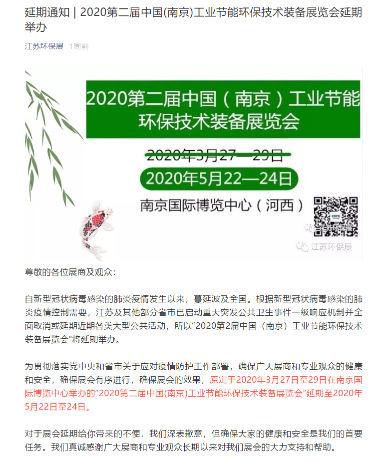 根據(jù)環(huán)保展設(shè)計搭建公司領(lǐng)藝展覽了解到,自新型冠狀病毒感染的肺炎疫情發(fā)生以來,蔓延波及全國。根據(jù)新型冠狀病毒感染的肺炎疫情控制需要,江蘇及其他部分省市已啟動重大突發(fā)公共衛(wèi)生事件一級響應(yīng)機(jī)制并全面取消或延期近期各類大型公共活動,所以“2020第2屆中國(南京)工業(yè)節(jié)能環(huán)保技術(shù)裝備展覽會”將延期舉辦。 為貫徹落實黨中央和省市關(guān)于應(yīng)對疫情防護(hù)工作部署,確保廣大展商和專業(yè)觀眾的健康和安全,確保展會有序進(jìn)行,確保展會的效果,原定于2020年3月27日至29日在南京國際博覽中心舉辦的“2020第二屆中國(南京)工業(yè)節(jié)能環(huán)保技術(shù)裝備展覽會”延期至2020年5月22日至24日。如需環(huán)保展設(shè)計請聯(lián)系領(lǐng)藝展覽,希望我們能在環(huán)保展搭建上為您添磚加瓦,祝各位朋友收獲多多,滿載而歸!
