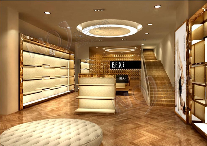 契合的波爾西斯品牌形象和產(chǎn)品特性,采用矩形結(jié)構(gòu),再搭配燈具燈光的效果,襯托出展位高端、時尚的氛圍,突出一種現(xiàn)代、歐美的時尚品味。